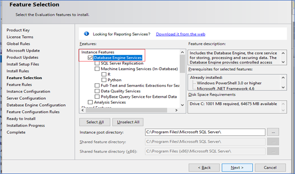 Step 8: Click Next > Select Database Engine Component (For OLTP: LIVE, Real-time Data) > Next