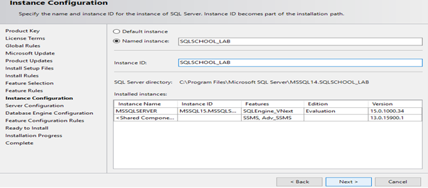 Step 9: Specify a Name to your Installation = INSTANCE NAME > Click Next: