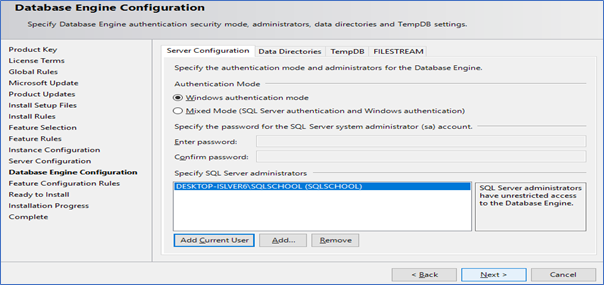 SQL Server installation steps