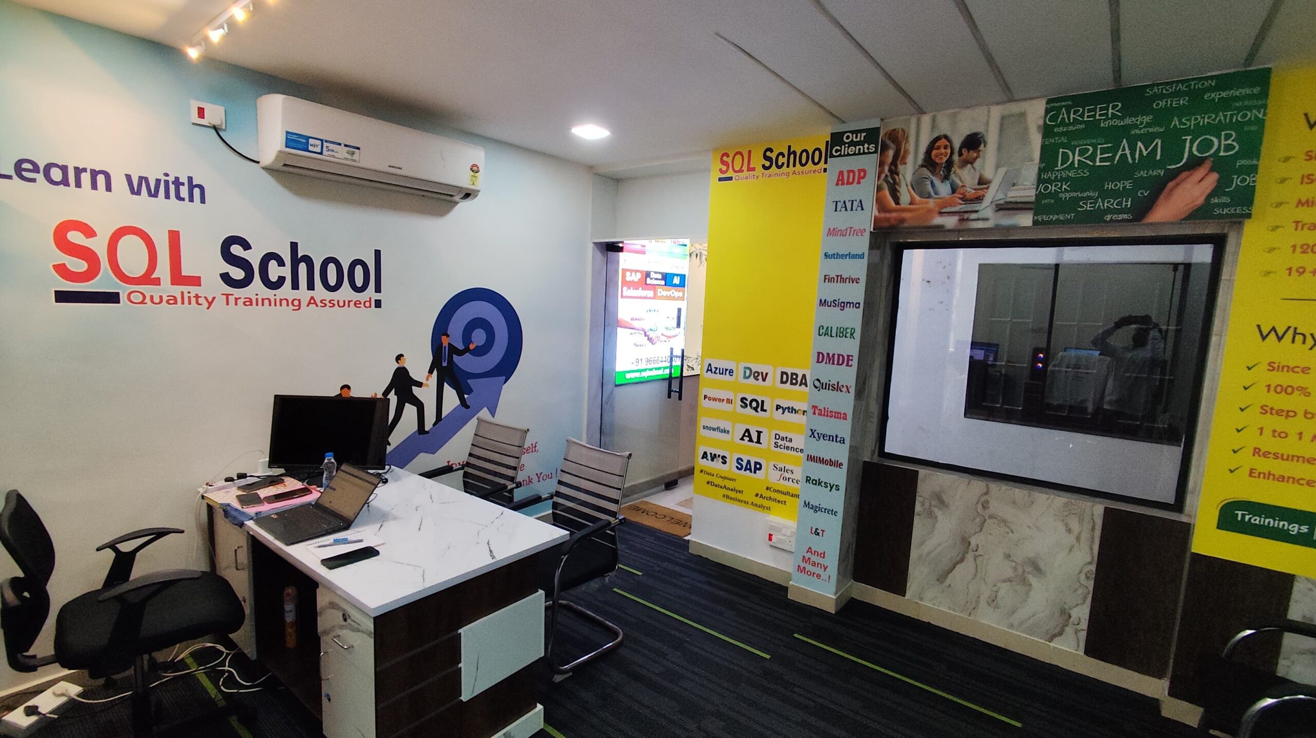 SQL School is a registered training institute, established in February 2008 at Hyderabad, India. We offer Real-time trainings and projects including Job Support exclusively on Microsoft SQL Server, T-SQL, SQL Server DBA and MSBI (SSIS, SSAS, SSRS) Courses. All our training services are completely practical and real-time. CREDITS of SQL School Training Center