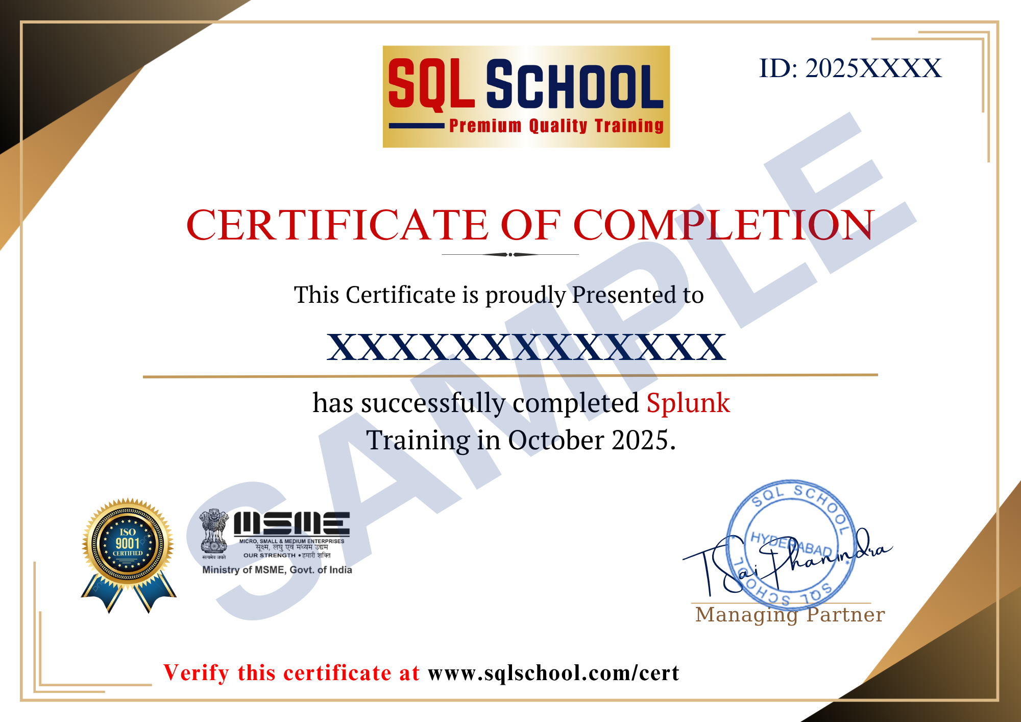SQL School is a registered training institute, established in February 2008 at Hyderabad, India. We offer Real-time trainings and projects including Job Support exclusively on Microsoft SQL Server, T-SQL, SQL Server DBA and MSBI (SSIS, SSAS, SSRS) Courses. All our training services are completely practical and real-time. CREDITS of SQL School Training Center